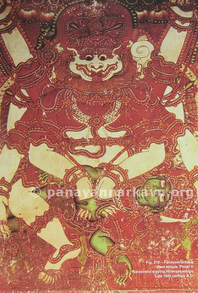Panayannarkavu is one of the few temples well-known for their Wall Paintings. It has not been easy to determine the antiquity of these paintings. Based on themes from the Devibhagawatam Ramayana and other epics, these painting appear to be of long vintage and are of exquisite beauty.